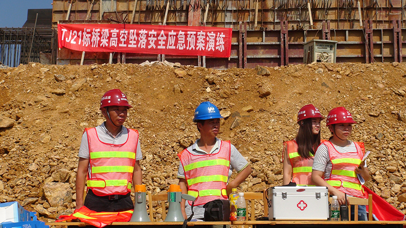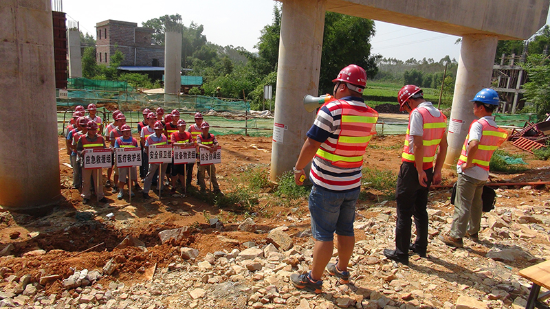 9月19日上午10时,演练开始,从现场准备到总指挥魏遵广宣布警报解除,整个演练时长一个小时。现场作业人员坠落,施工员立即向项目应急救援领导小组报告现场情况,与此同时,各应急救援职能小组立即行动,按分工展开救援工作。应急救援小组在较短的时间内将整个应急事故演练完毕,充分体现了该合同段对应急事故处理的经验和能力,各应急小组任务明确,指挥得力,处理迅速,各组衔接有力,从而成功完成了演练。