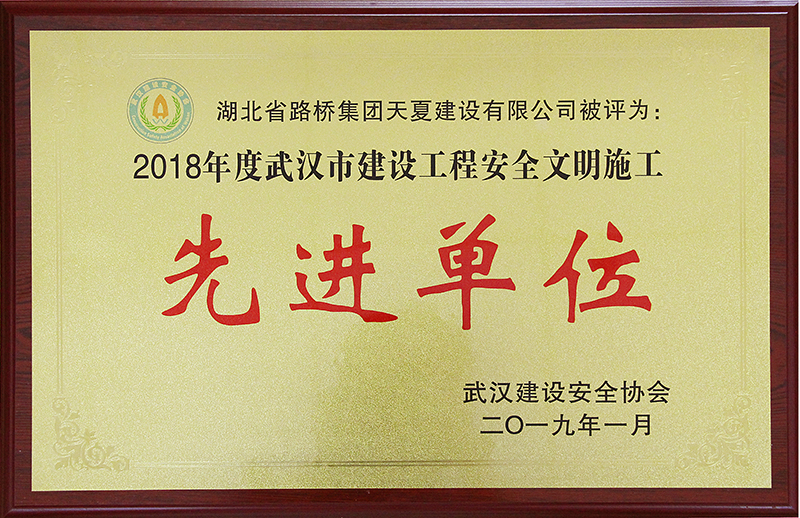 2018年度,湖北路桥天夏公司在武汉市城建委及武汉建设安全协会(以下简称协会)的正确指导下,认真贯彻落实国家安全生产法律法规,积极开展建设工程安全文明施工活动,获得省市相关单位及业主的众多好评。
