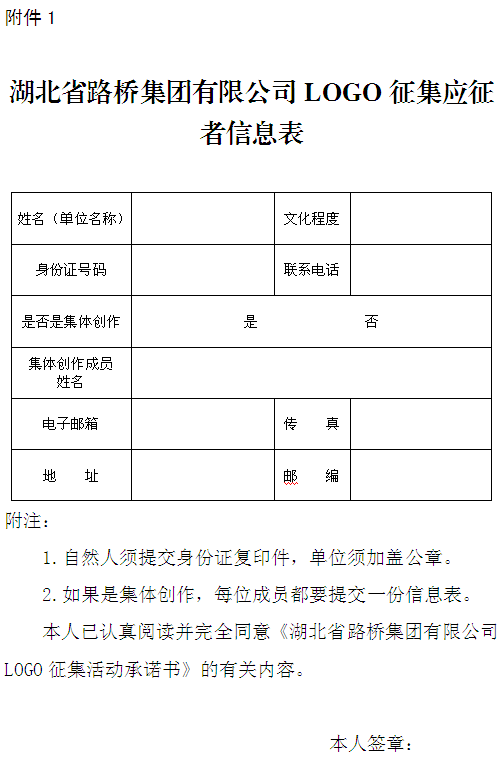附件:1.湖北省路桥集团有限公司LOGO征集应征者信息表