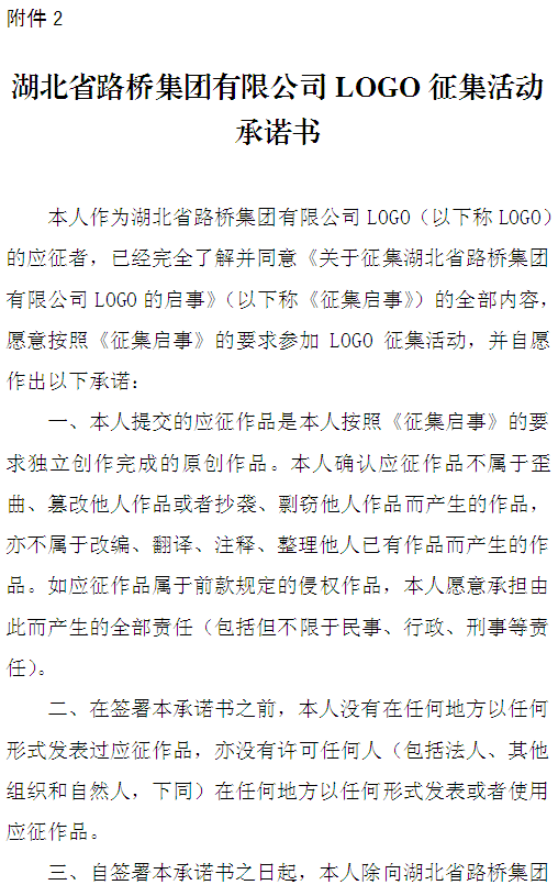 2.湖北省路桥集团有限公司LOGO征集活动承诺书