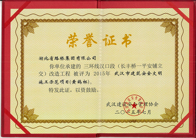近日,从湖北省市政工程协会传来喜讯,由湖北路桥集团承建的三环线北段(长丰桥――平安铺)改造工程继获得"十佳创新项目"奖、武汉市建筑安全文明施工示范项目(黄鹤杯)、武汉市市政工程金奖后再获殊荣,荣获2016年度湖北省市政示范工程金奖。