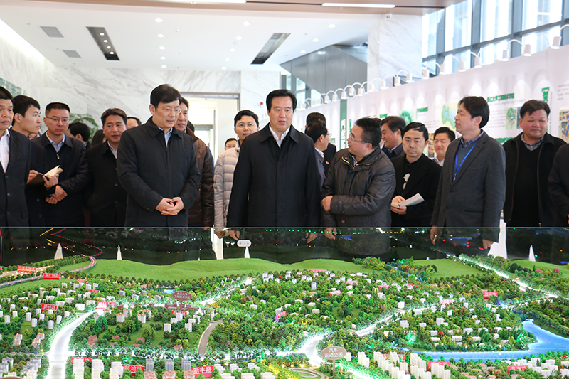 图为常务副省长黄楚平(中)一行参观梓山湖新城沙盘