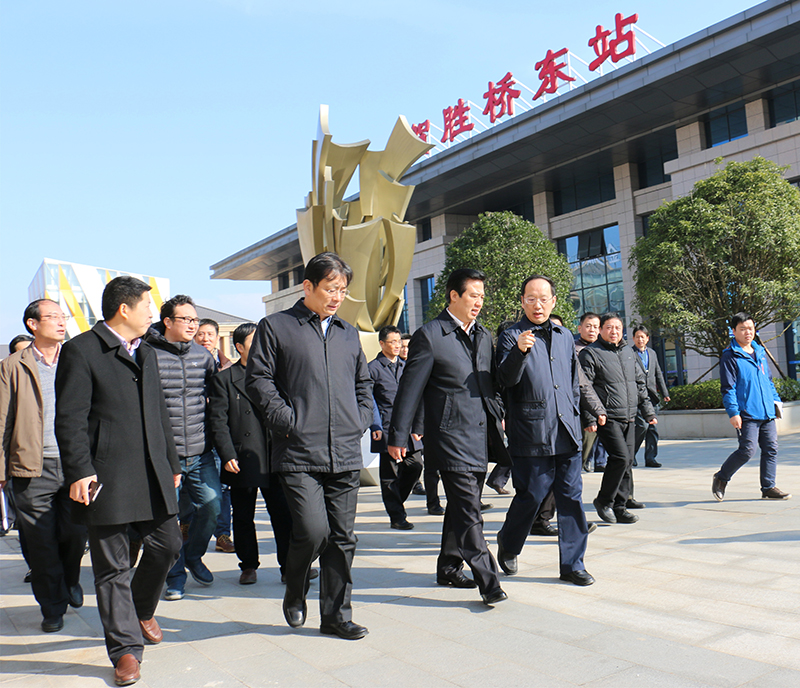 图为常务副省长黄楚平(前排左三)一行视察贺胜桥东站