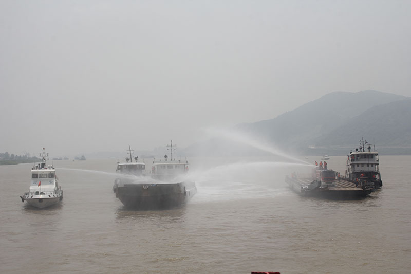 参演船舶有长江海事、公安、航道船艇、施工单位船舶和社会船舶共计11艘,通讯和医疗车辆各1辆以及其他相关辅助装备,演习设置了船舶失控救助、人员撤离与疏散、落水人命救助、反恐演习、船舶火灾救援、编队检阅六个科目,参演人员达100多人。