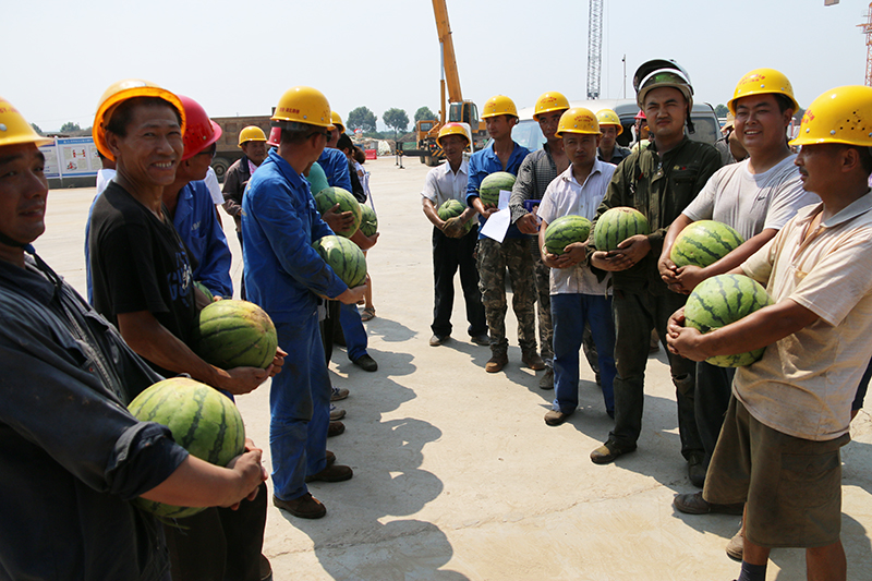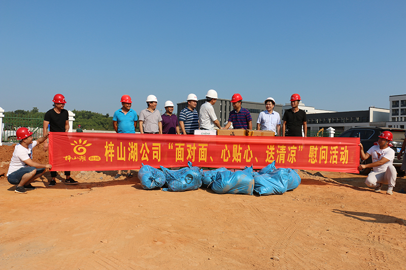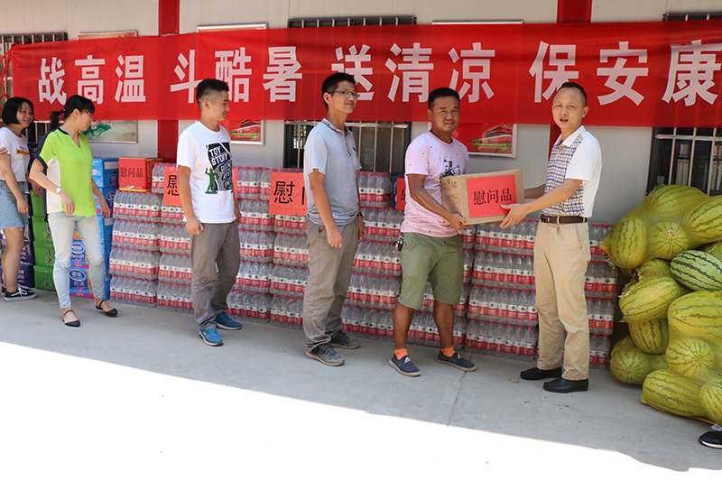 针对这种极端天气,为保障员工身体健康,进一步提高士气,促进大干,白洋二标项目、梧桐湖项目等也分别开展夏日送清凉活动,鄂咸高速项目、荆州农高项目也分别得到了鄂州市梁子湖区领导和华中农高投公司的高温慰问。