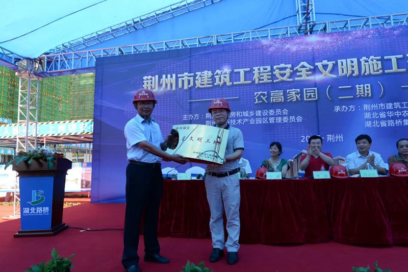 被称作中国"绿谷"的荆州高新技术产业园(简称荆州高新区)又添夺人光彩。7月27日上午,由省联投路桥集团承建的农高家园二期工程,获评荆州市"十星"文明工地,来自各市县区的500余建筑人士莅临工地现场观摩。