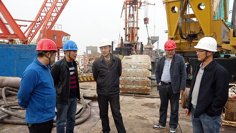 付克俭一行先后视察了仙姑山隧道及武穴长江大桥15#主塔桩基施工现场。视察期间,项目经理蔡明征对目前主桥桩基的施工工艺及施工进展情况进行了详细汇报,付克俭对项目现阶段工作给予充分肯定并指出项目当前任务主要是抓进度、抢工期,在合理调配施工方案的情况下争取年底前完成主桥桩基施工,为下阶段主桥承台施工打好基础。