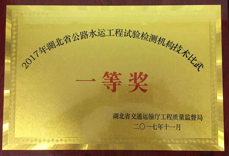 2017年11月11日,由湖北省交通运输厅工程质量监督局主办的钢筋位置及保护层厚度比对试验暨技术比武在中铁大桥局集团武汉桥梁科学研究院有限公司举行,此次技术比武设一、二、三等奖,其中一等奖1名,二等奖3名,三等奖6名。湖北省总共有60多家试验检测单位参与了此次技术比武,经过激烈角逐,路桥集团瑞达公司荣获该技术比武第一名。