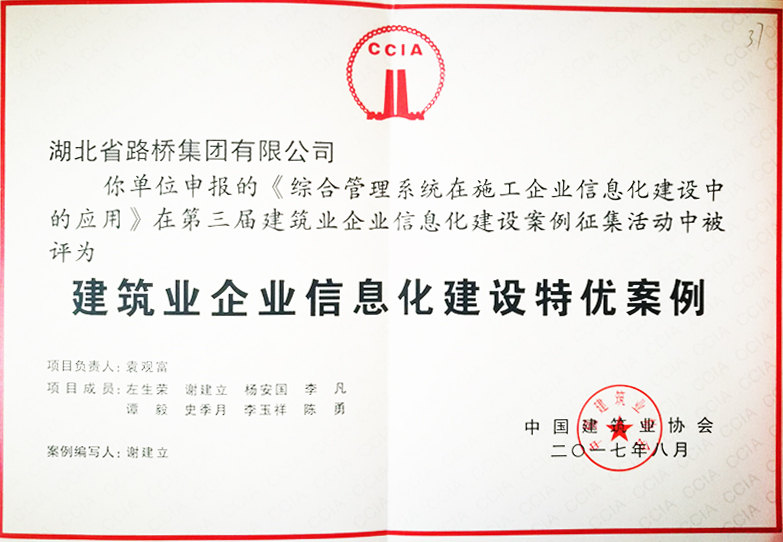 近日,中国建筑业协会组织开展的第三届全国建筑业企业信息化建设案例征集活动评选结果揭晓,公司申报的《综合管理系统在施工企业信息化建设中的应用》荣获建筑业企业信息化建设特优案例奖。