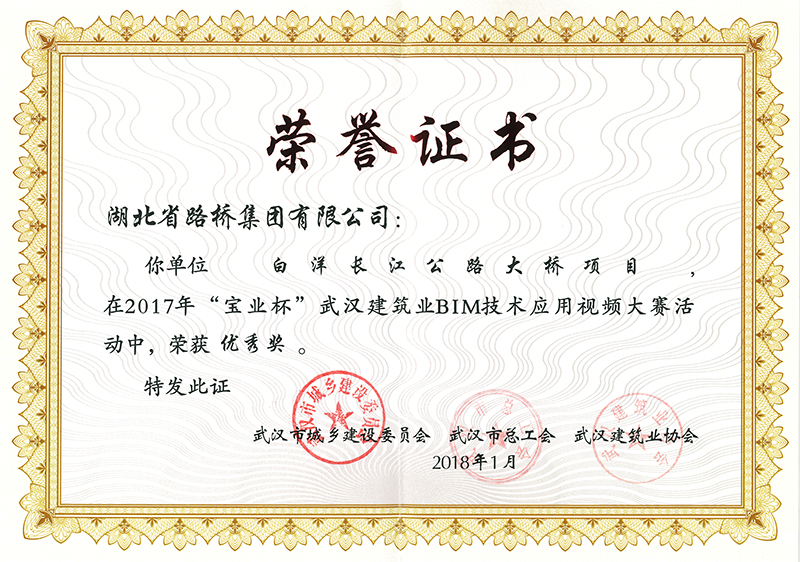 1月18日,2017年"宝业杯"BIM技术应用视频大赛精彩落幕,公司参赛作品《白洋长江公路大桥项目》荣获优秀奖。