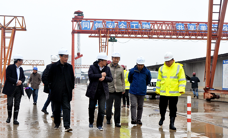 高进华一行深入施工一线,先后前往鄂咸高速葛店梁场、五四湖特大桥钢栈桥及梧桐湖互通主线桥进行实地查看,并详细询问了项目建设进展情况。