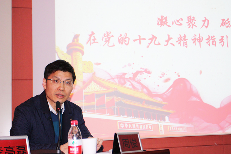 1月22日下午,路桥集团党委书记、执行董事周俊为全体党员干部职工作了题为《凝心聚力 砥砺前行――在党的十九大精神指引下续写路桥新篇章》的专题党课宣讲。