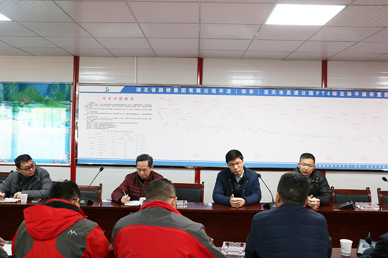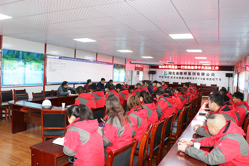项目经理陆召松详细汇报了平天4标2017年工作总结及2018年工作计划,周俊肯定了项目部的进度和员工风貌,提出了5点要求:一是项目部要尽快全面开启施工热潮、保证施工质量,确保施工安全;二是年轻的管理人员要勤学苦干,学知识、学管理、学做人、学做事,实现修一条路、锻炼一批人;三是项目领导班子要做好"三控两管一协调",时刻维护湖北路桥形象,努力打造湖北路桥品牌;四是项目部各职能部门要加强沟通,加强与公司总部相关部门之间沟通,形成工作例会制度,做好工作计划;五是全体员工要坚持公私分明、崇廉拒腐,清白做人、干净做事,自信自强,共同为湖北路桥创效益。