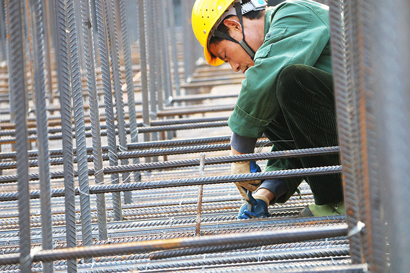 图:春晨,绑扎钢筋