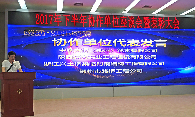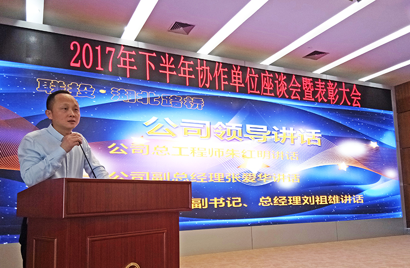 4月28日,公司2017年下半年协作单位座谈会暨表彰大会在4楼会议室成功召开。公司各职能部门、各分子公司及120多家协作单位代表参与了此次会议;公司党委副书记、总经理刘祖雄,副总经理袁观富、张爱华,总工程师朱红明等领导出席了本次会议。