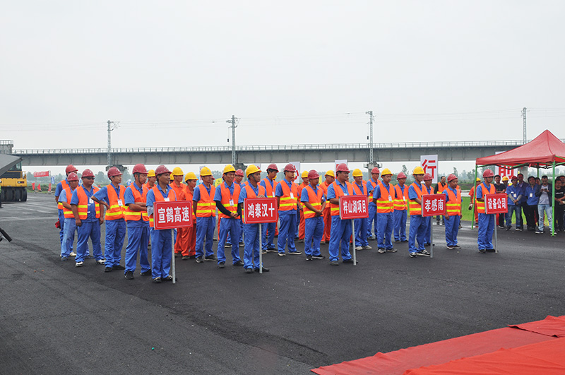 上午九点整,开幕式如期举行,按赛事流程,来自集团公司宣鹤高速项目部、鸿泰公司汉十4标项目部、市政公司梓山湖项目部、孝感南三标项目部以及设备公司共5支代表队的42名机械操作手圆满完成拌合站、摊铺机、压路机三个相关工种的比赛内容。经过近六个小时的激烈角逐,由专业评委严格验评打分,最终来自宣鹤高速的邓高奎获得拌合站比赛的一等奖,来自设备公司的段金瑞和孟澄峰获得摊铺机和压路机组比赛的一等奖。另外还评选出二等奖六名,三等奖9名,新人奖3名。
