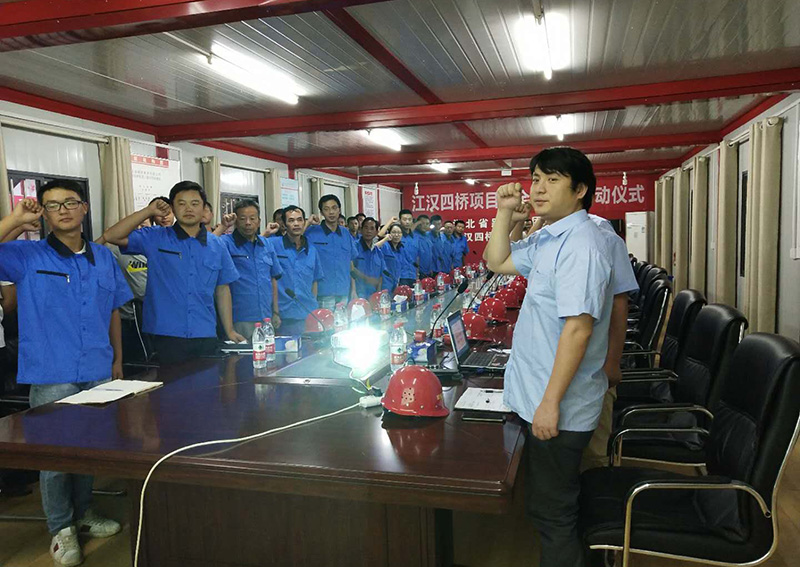 为提高项目员工安全工作的凝聚力,树立安全防范意识,增强项目员工斗志决心,江汉四桥项目安全总监带领,项目全体员工参与,共同进行庄重宣誓:全员参与,恪尽职守;遵章守规,反对违章;排除隐患,守护底线;生命至上,安全发展!