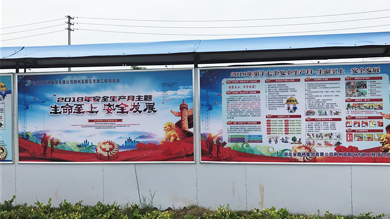 荆州农高市政项目积极响应公司的号召,围绕"生命至上,安全发展"主题,设计制作了一系列安全宣传公告栏、条幅标语、宣传画册,在项目上营造出了"关注安全、敬畏生命"的良好氛围,将按照活动方案分阶段扎扎实实进行到底,提高项目安全生产内在动力,杜绝各类安全事故发生。