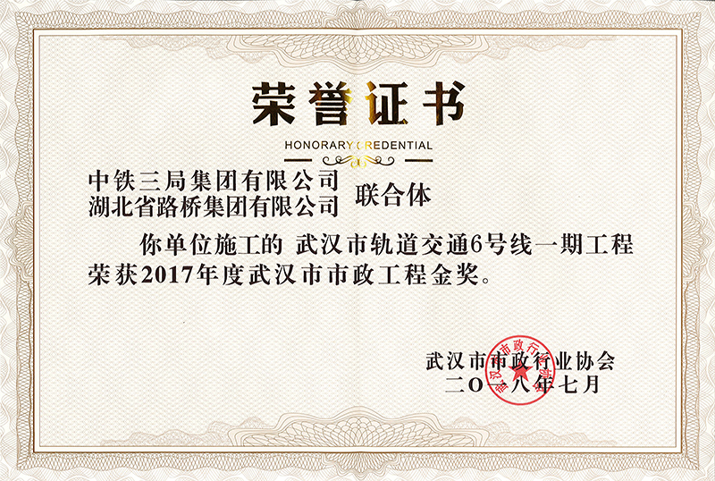 近日,武汉市政行业协会第二届三次会员代表大会暨表彰大会在武汉会议中心隆重召开,由湖北省路桥集团有限公司承建的武汉市轨道交通6号线一期工程第十三标段土建工程荣获“武汉市市政工程金奖”,且被推荐参加“湖北省市政示范工程”评选。“武汉市市政工程金奖”是武汉市市政行业在工程质量方面的最高荣誉,其工程质量代表武汉市市政基础设施工程建设的领先水平。