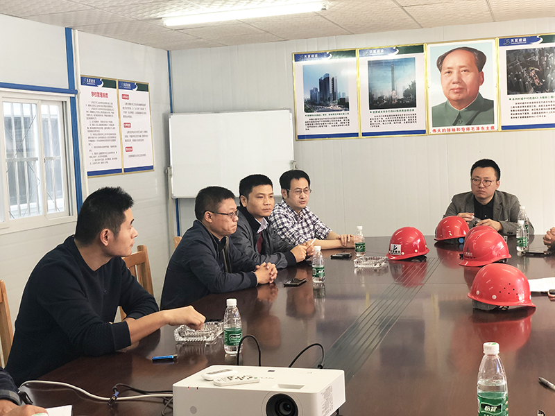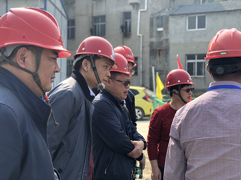 调研过程中,潘新平一行对项目施工进度、现场实况、施工重难点进行了深入的了解。潘新平指出,现场施工要严格遵照建管部的要求施工建设,具体施工节点要与天夏建设公司后方实时上报,做到对自己的工作尽心负责;与业主方勤加沟通,确保不拖沓工期,保证施工进度按时完成。袁观富指出,项目部与业主方应相互了解彼此诉求,“多开小会,少开大会”,围绕业主目标,确认工期,做到相互之间荣辱与共;特别强调夜间施工注意事项,保证不打扰附近居民正常休息。