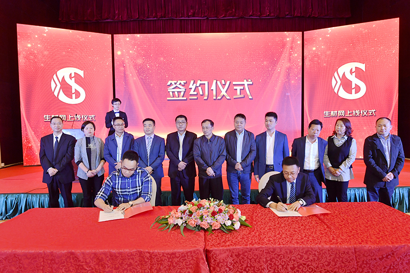 图:湖北路桥桥盛工贸有限公司党支部书记万成华代表生材网与供应商签约