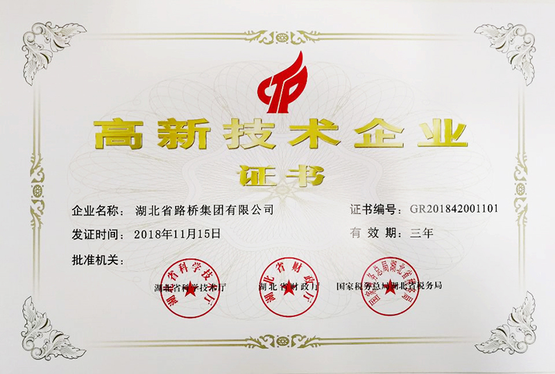 “高新技术企业”是对企业的知识产权、科技成果转化能力、研究开发组织管理水平及企业经济增长等多方面实力的综合评定。路桥集团于2018年4月底申报,经过武汉科技局材料审核、湖北省科技厅专家审查、项目税务核查,历时7个月,于2018年11月通过国家主管部门核查、公示,2019年2月得到认定公布。