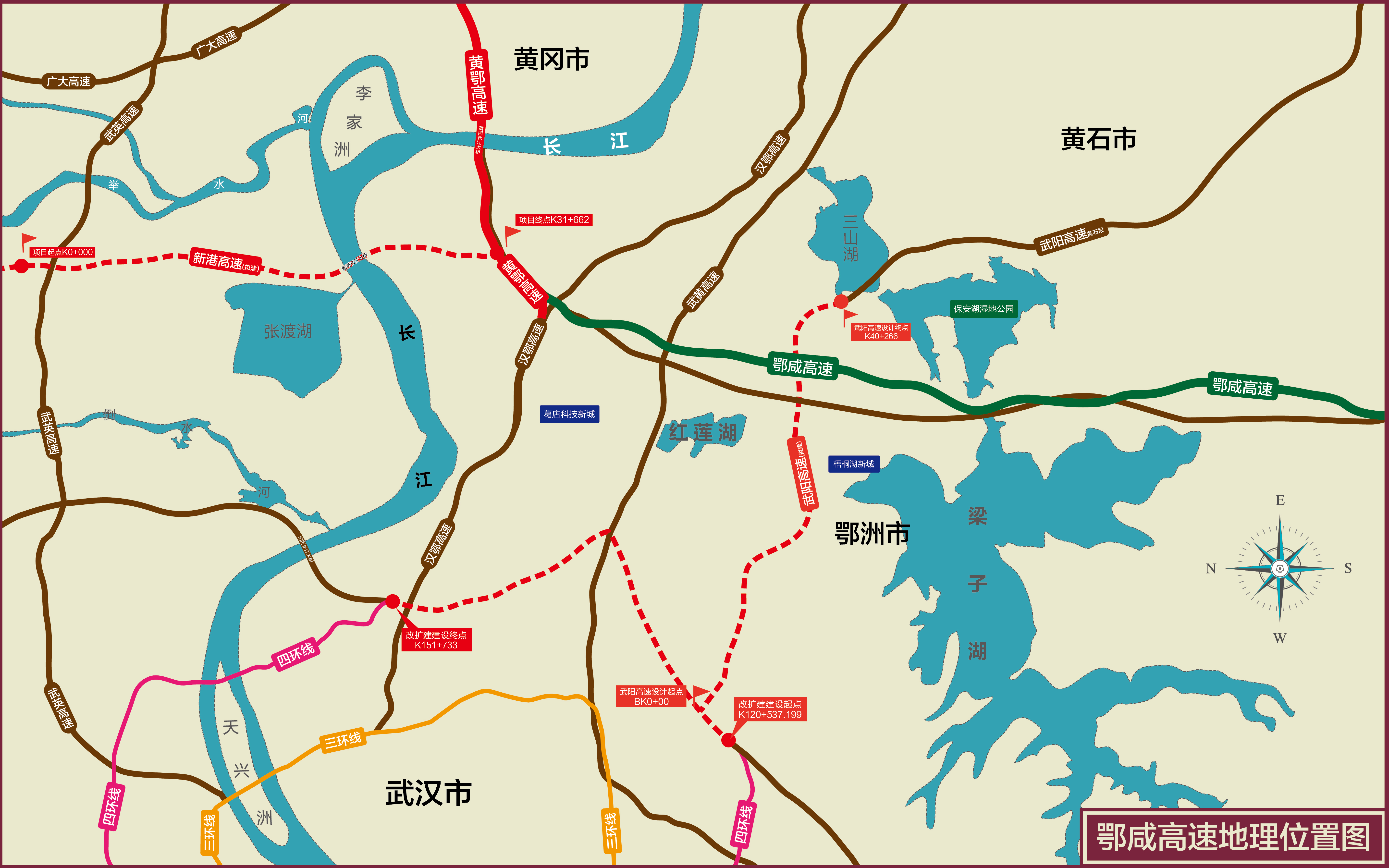 该项目预计明年底建成通车,届时将结束梁子湖区不通高速公路的历史,大大缩短黄冈、鄂州与咸宁的距离,促进武汉城市圈东部外围城市经济社会发展。