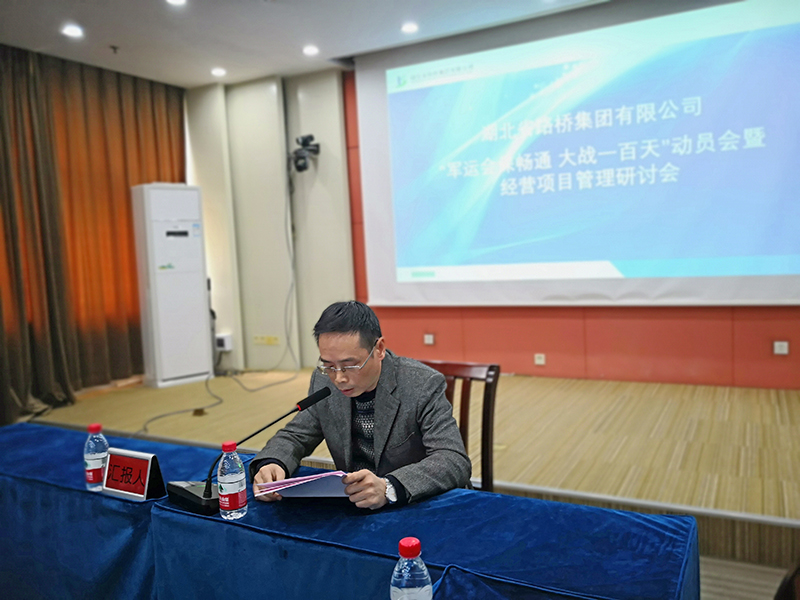 会上,联投高速公路养护项目负责人张威和武汉南四环路面摊铺项目负责人徐其波,分别对其所负责的军运会保障线路相关情况进行汇报,主要汇报了项目各个工程的完成情况及存在的问题和困难。路桥集团机关各职能部门参会人员在听取报告后,相互交流讨论,提出了相应的解决办法。