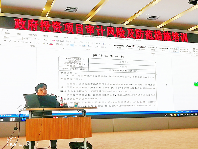 上午 ,专家程征老师讲授了政府投资项目审计风险及控制,重点阐述了项目工程造价方面是风险防范的重中之重,并从各方面详细阐明了项目部对现场的管控措施。下午,专家肖灯艳老师结合实际案例对《政府投资项目审计规程》进行了深度解读。培训过程中,大家仔细聆并互动。专家的现场解答得到在场人员的一致认可。