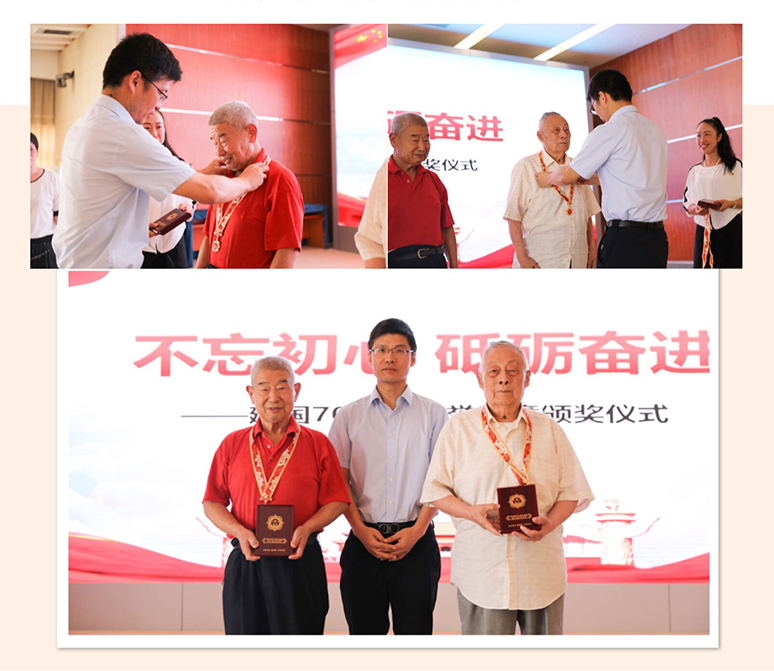 周俊详细询问了老同志们的生活情况和身体状况,再三叮嘱老同志们要保重身体,同时要求集团相关部门要一如既往地从思想上关心老干部、从生活上照顾老干部,让他们老有所养,老有所乐,安享晚年。对因行动不便未能出席颁奖仪式的另外6名老同志,周俊要求把“庆祝中华人民共和国成立70周年纪念章”送到老同志手中,并带去党和国家对他们的慰问以及集团对他们的关怀!