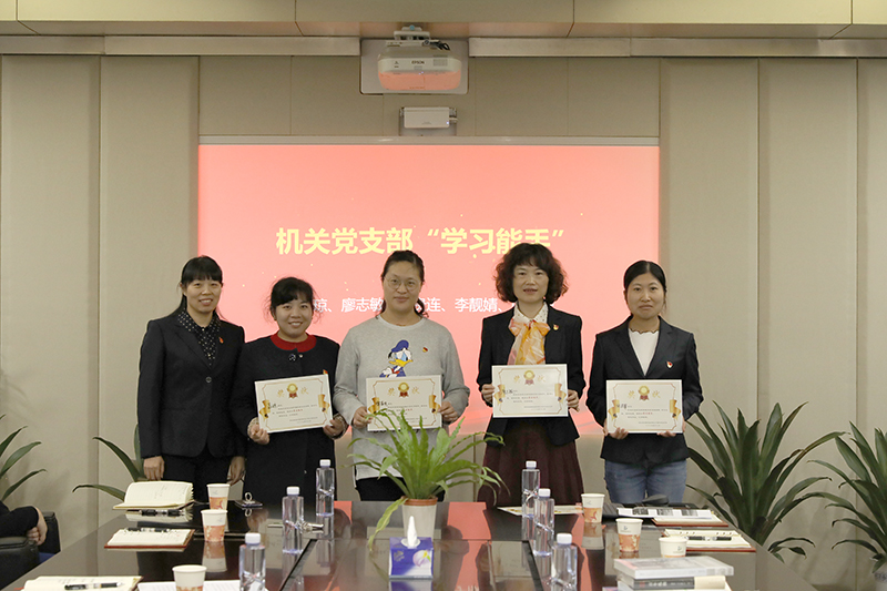 随后,会议对机关党支部评选的5名学习能手进行了表彰。经5个党小组推荐、机关党支部评定,最终聂琼、廖志敏、谭贵连、李靓婧、张洪翠5名同志获得“学习能手”荣誉称号。