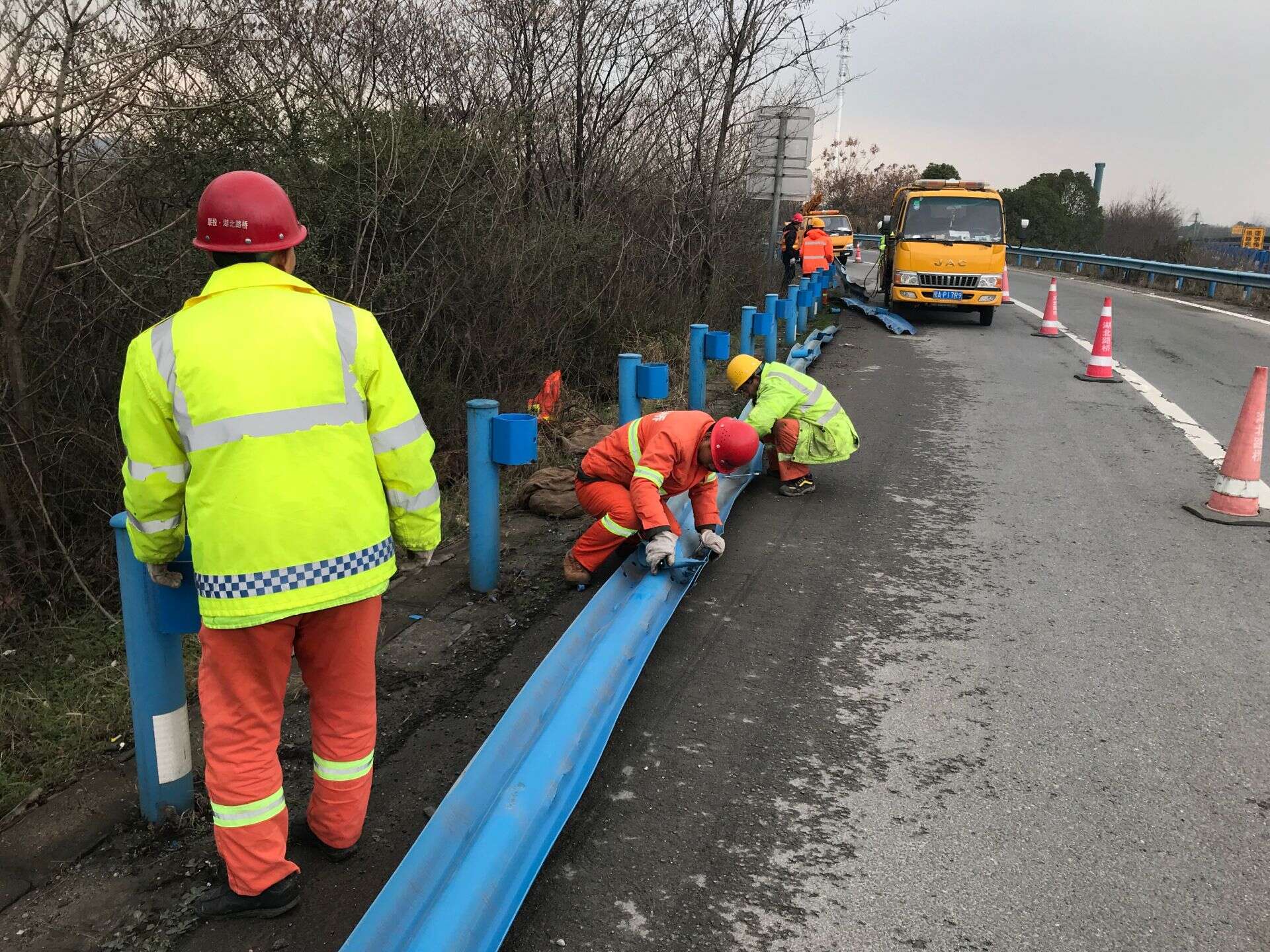 图:养护工人在更换护栏板