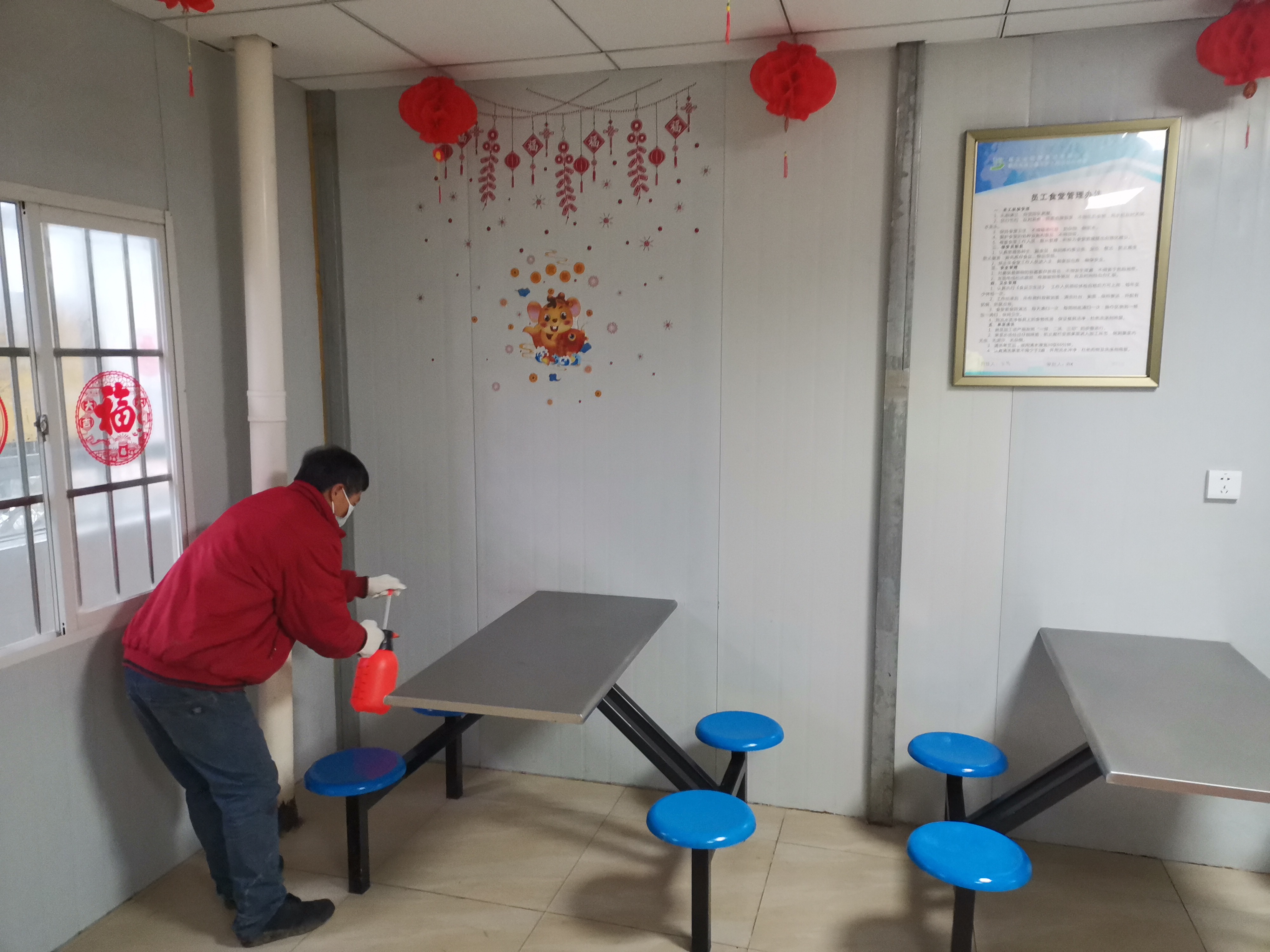 图:对项目食堂进行消毒