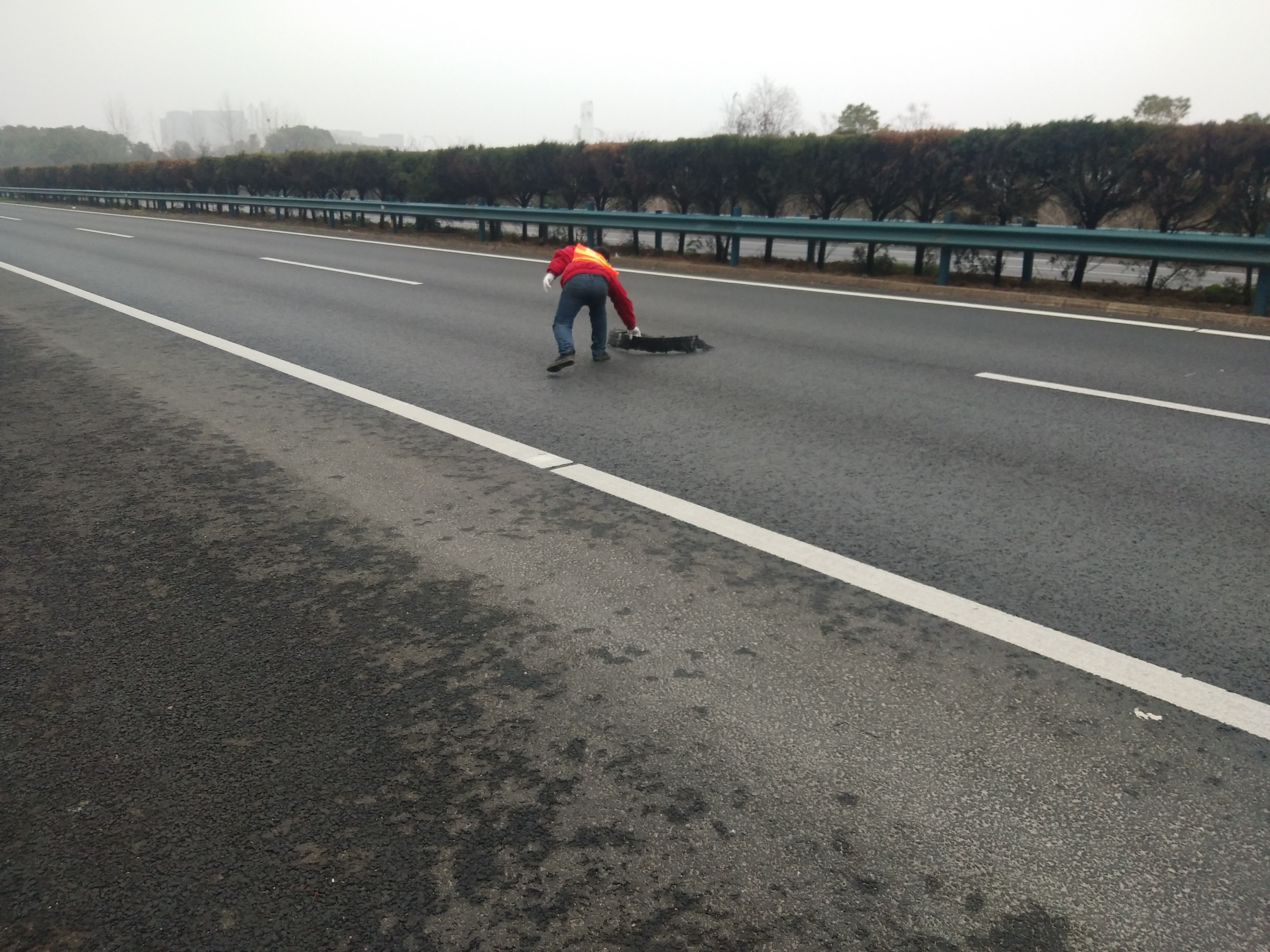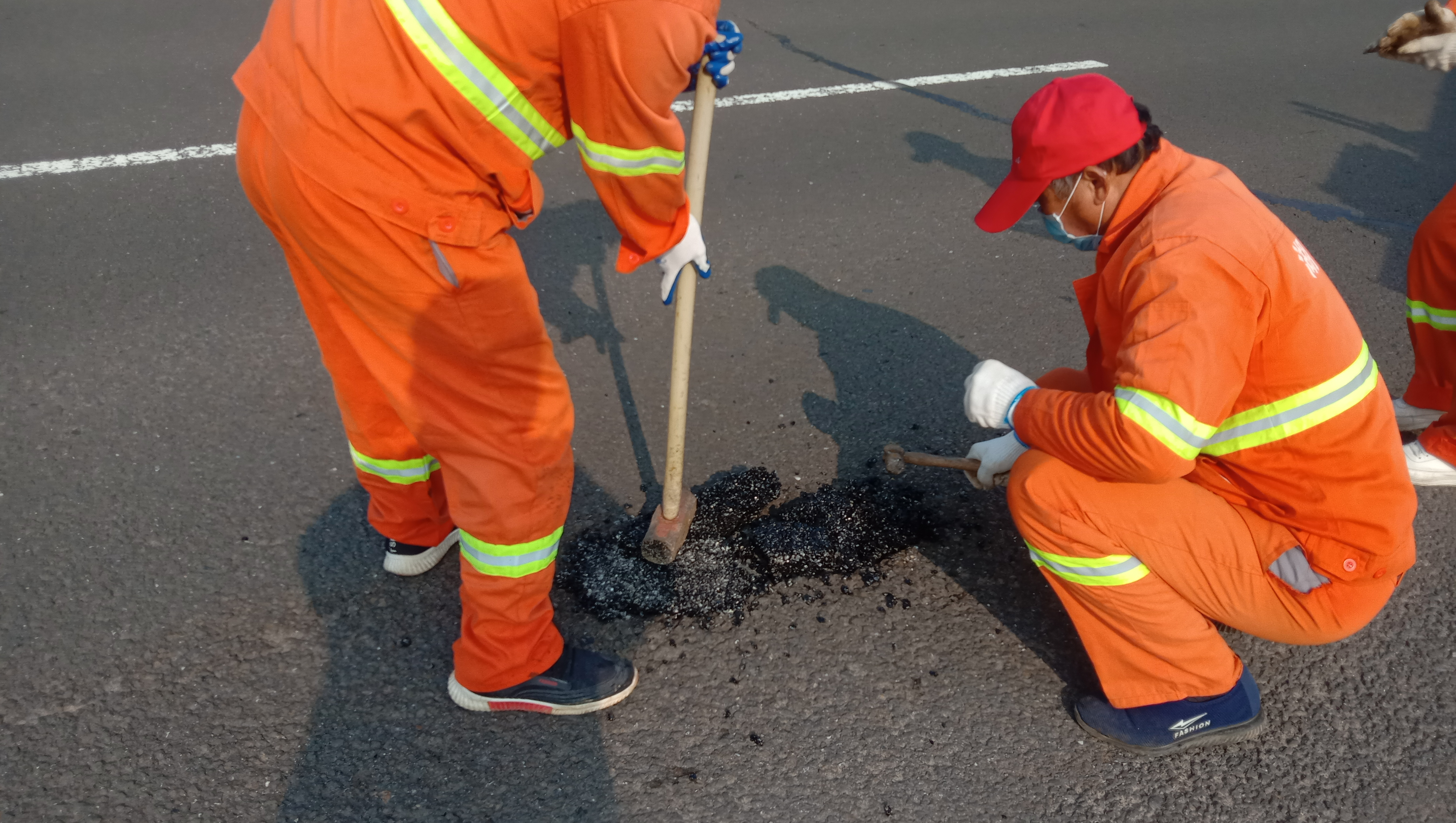 图:对路面坑槽进行应急修复