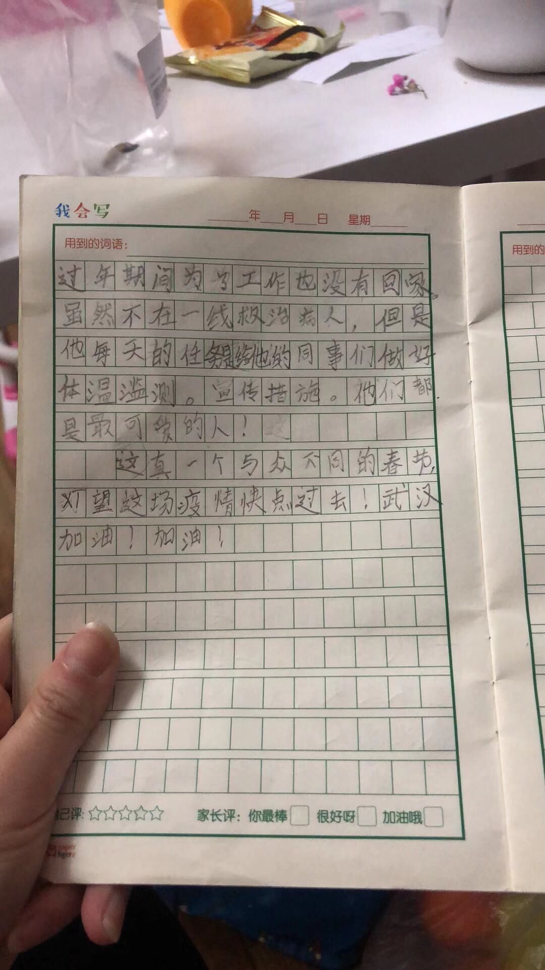 从2016年来到鄂咸高速项目的龚黎,2020年1月在工地上度过了他的第4个春节,这个春节对于他的岗位来说平凡无奇,履职尽责、做好巡查,确保人、物完好,他就可以顺利离岗回家;但疫情的肆虐给今年的春节刷上了“浓重”的色彩,龚黎也在他平凡的岗位上干出了不凡,往年初八之后就可以结束值班的龚黎,现在仍继续坚守在项目上,他为女儿准备的压岁钱到现在都还没有给出,读小学二年级的女儿在作文中写道:“我的爸爸是一位工程师,过年期间为了工作,也没有回家,虽然不在一线救治病人,但是他每天的任务是给他的同事们做好体温检测,宣传措施。他们都是最可爱的人!这真是一个与众不同的春节,xi望这场疫情快点过去!武汉加油!加油!”