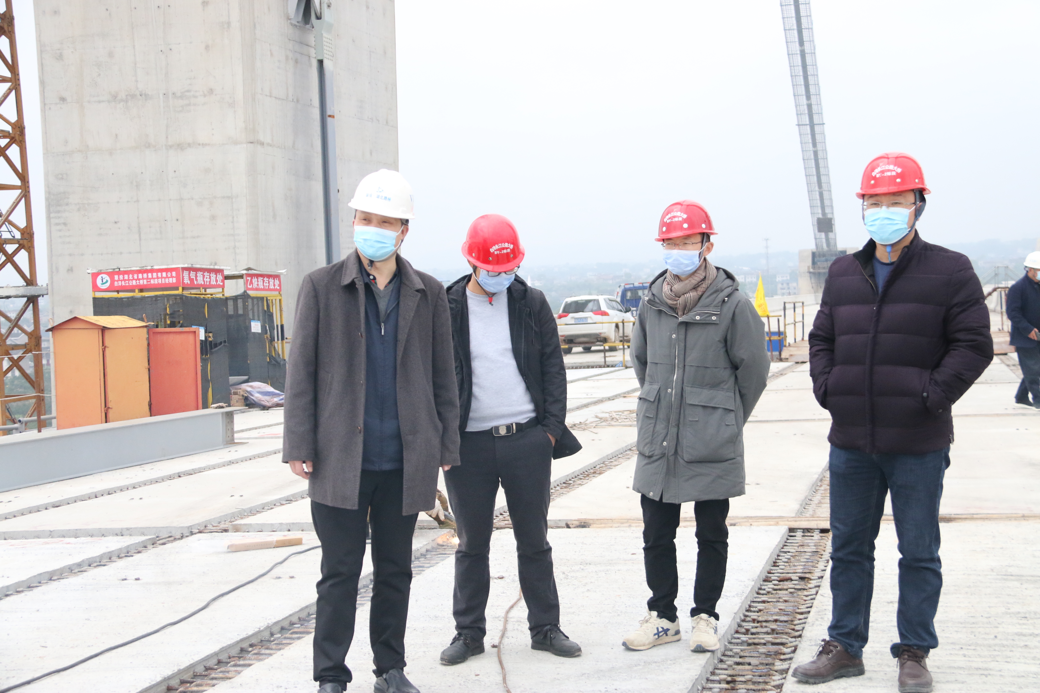 3月30日上午,湖北路桥集团党委委员、总工程师朱红明赴白洋长江大桥项目调研疫情防控及复工复产工作。白洋长江大桥项目经理张清利、项目书记王康明陪同调研。
