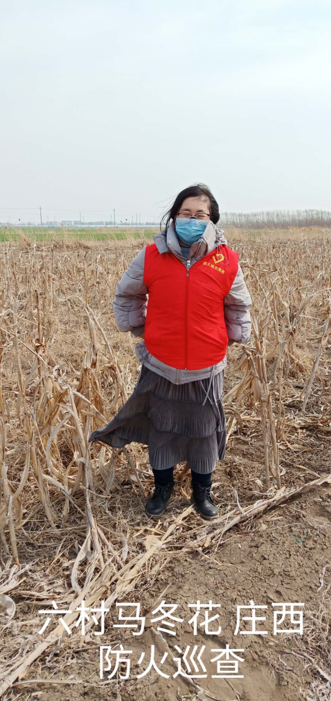 马冬花,湖北路桥荆州农高市政项目记账会计。疫情防控期间,她主动联系山东省潍坊市寿光市双王城生态经济园区管委会,积极参与到防疫服务中。她负责村头卡口值守、田间巡查秸秆禁烧、绕村查看火源等工作。她说:“疫情已经让我们遭受了磨难,现在正值春耕时期,我要为家乡的农耕保驾护航。”
