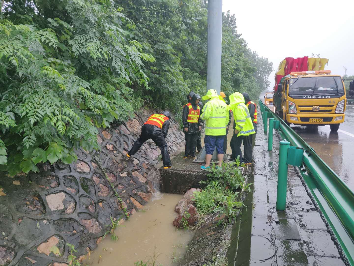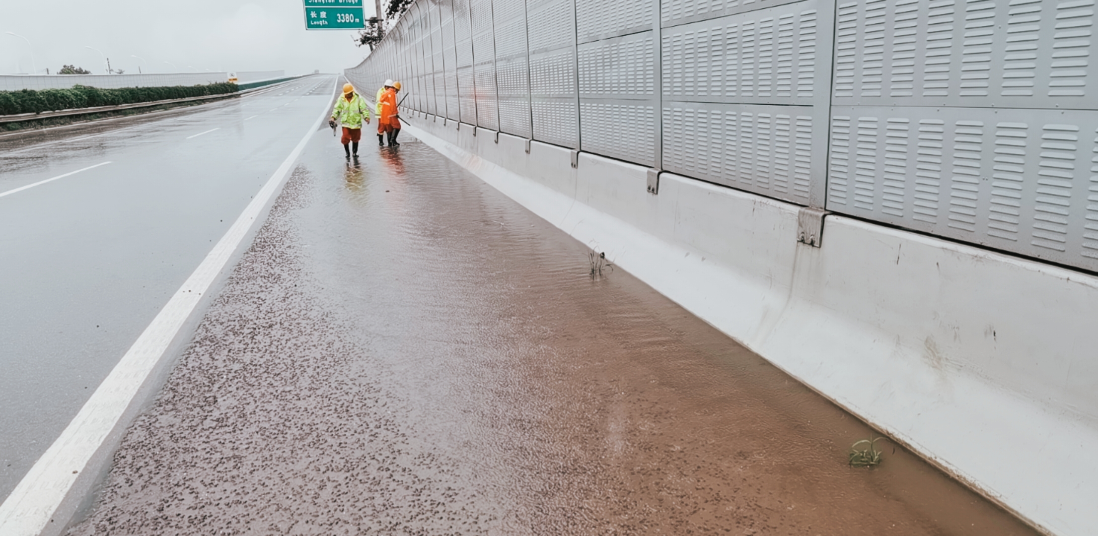排查全面。连日大雨,联投养护项目及时启动应急预案,全员24小时待命,2小时一班,2个人为一组,对易积水路段、高边坡、桥梁排水系统、排水沟等部位进行重点排查。