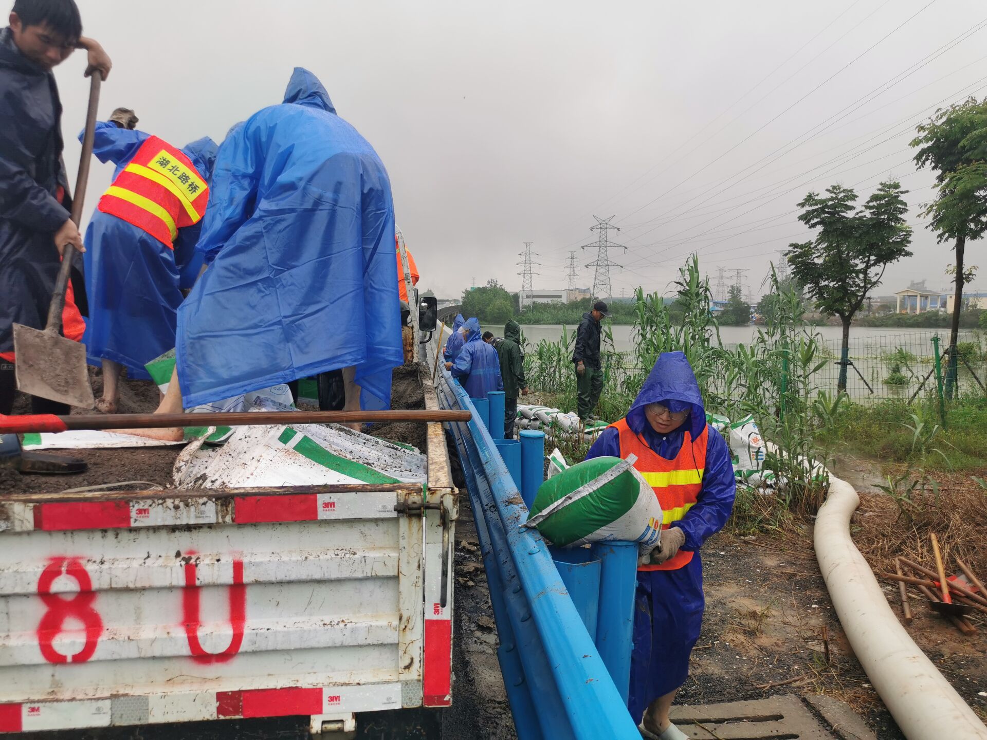 大雨无情人有情,项目安全部带领专职电工对现场施工用电进行安全大排查,消除用电隐患,对于箱体浸泡,无防护雨棚的配电柜一律切断电源,禁止使用;现场施工员实行轮流值班制度,不分昼夜对施工道路进行抽排、装沙袋加固堤坝等工作;测量组人员加班加点量测荆秘路桥、高科路桥的桥下水位,对于防汛预警工作起到了重要作用;设备物资部同事负责物资供应,冒雨对防汛工作中使用的设备检修;后勤工作人员不辞辛苦的为坚守一线的工作人员送饭送水,为防汛工作的正常开展续航发力……