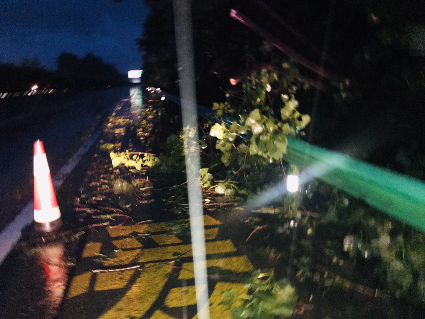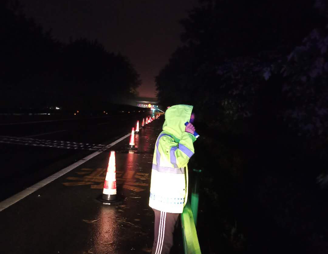 夜间,项目部组织人员轮岗值守巡查,严格执行24小时值班和24小时领导在岗带班制度,保持通讯畅通;加强与交警、路政等部门信息互通,做到上传下达,发现险情第一是时间赶至现场处理;坚决做到责任落实到位、巡查排查到位、物资保障到位。