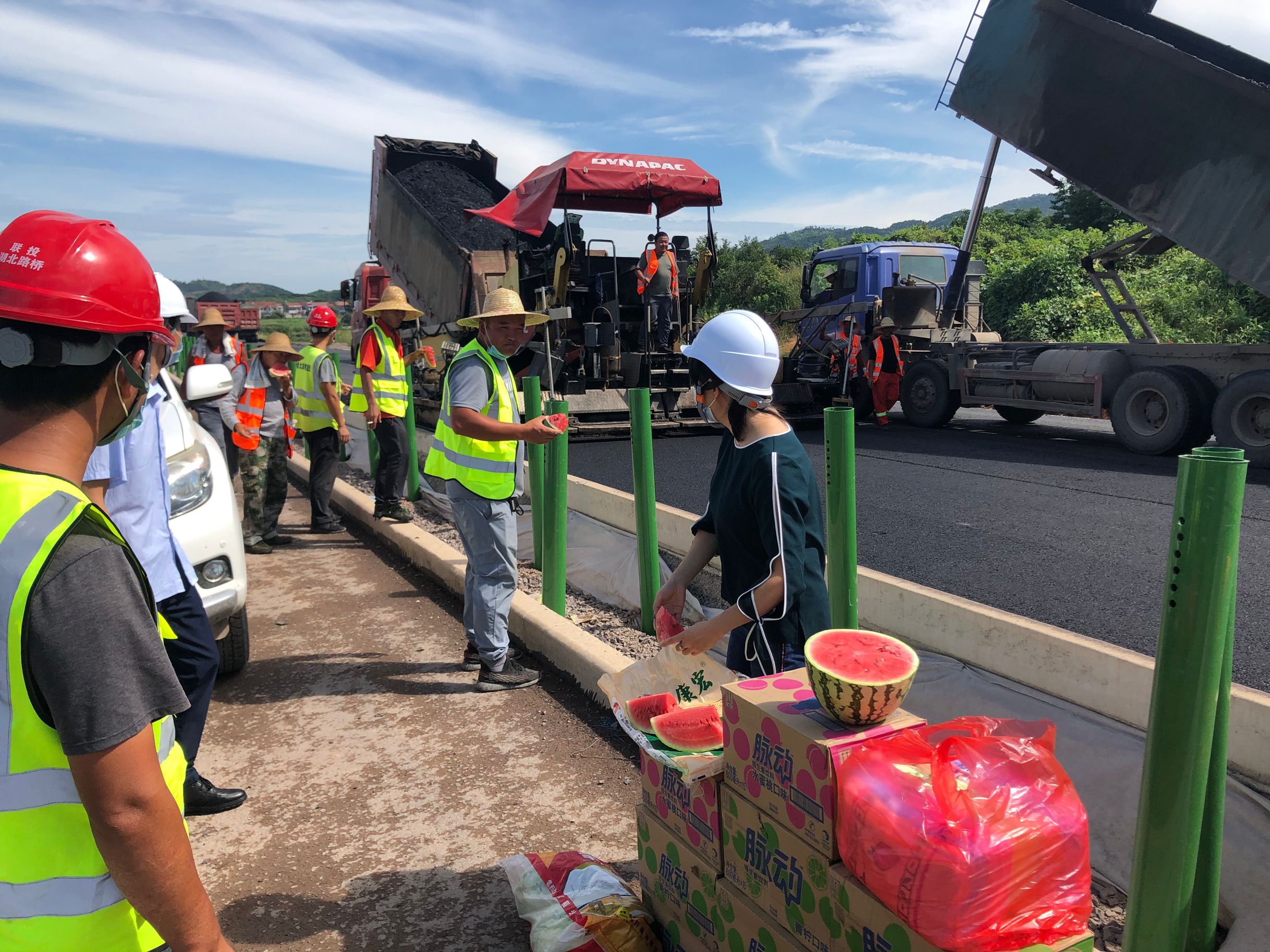 随后,慰问组来到鄂咸高速工区现场,为一线职工们送去西瓜、凉茶、防暑药品等物资。李素英代表集团党委、工会向奋战在建设一线的职工们表示真诚地感谢,并详细询问了高温作业中的安全防护措施和生产进度安排。李素英强调,项目部要切实保障好广大职工的安全健康,严格落实防暑降温工作举措,以此为前提高效优质推进项目生产工作。李素英鼓励项目一线职工充分发扬工匠精神,将鄂咸高速项目打造成争创省优、国优的标杆工程,为高品质的百年路桥梦努力奋斗。