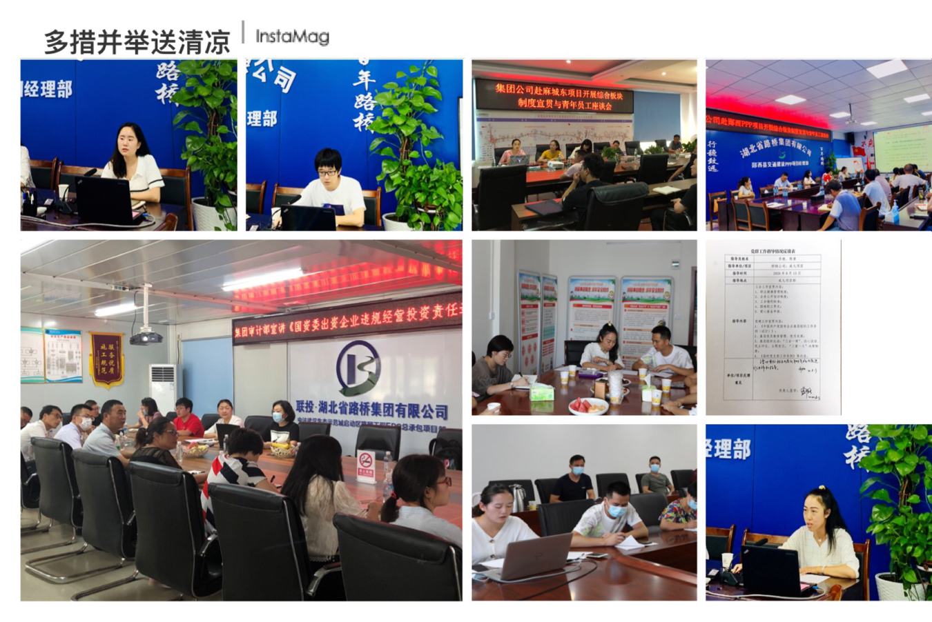“送制度”:为进一步提高项目全员制度意识,增强制度执行力,促进项目管理规范运行,党群部、人资部、综合部、法务部、审计部相继奔赴咸九、郧西PPP、宣鹤、宣咸、麻城东、梧桐湖、中法新城、丹江口片区等9个项目、天夏、养护、设备等3个分公司进行党建、工会、人力资源、综合管理、法务法规和责任追究等制度宣贯,开展工作检查和点对点指导,促进了基层员工对公司各项规章制度和工作流程的了解,为推进制度落地生根,促进项目顺畅工作发挥了积极作用。