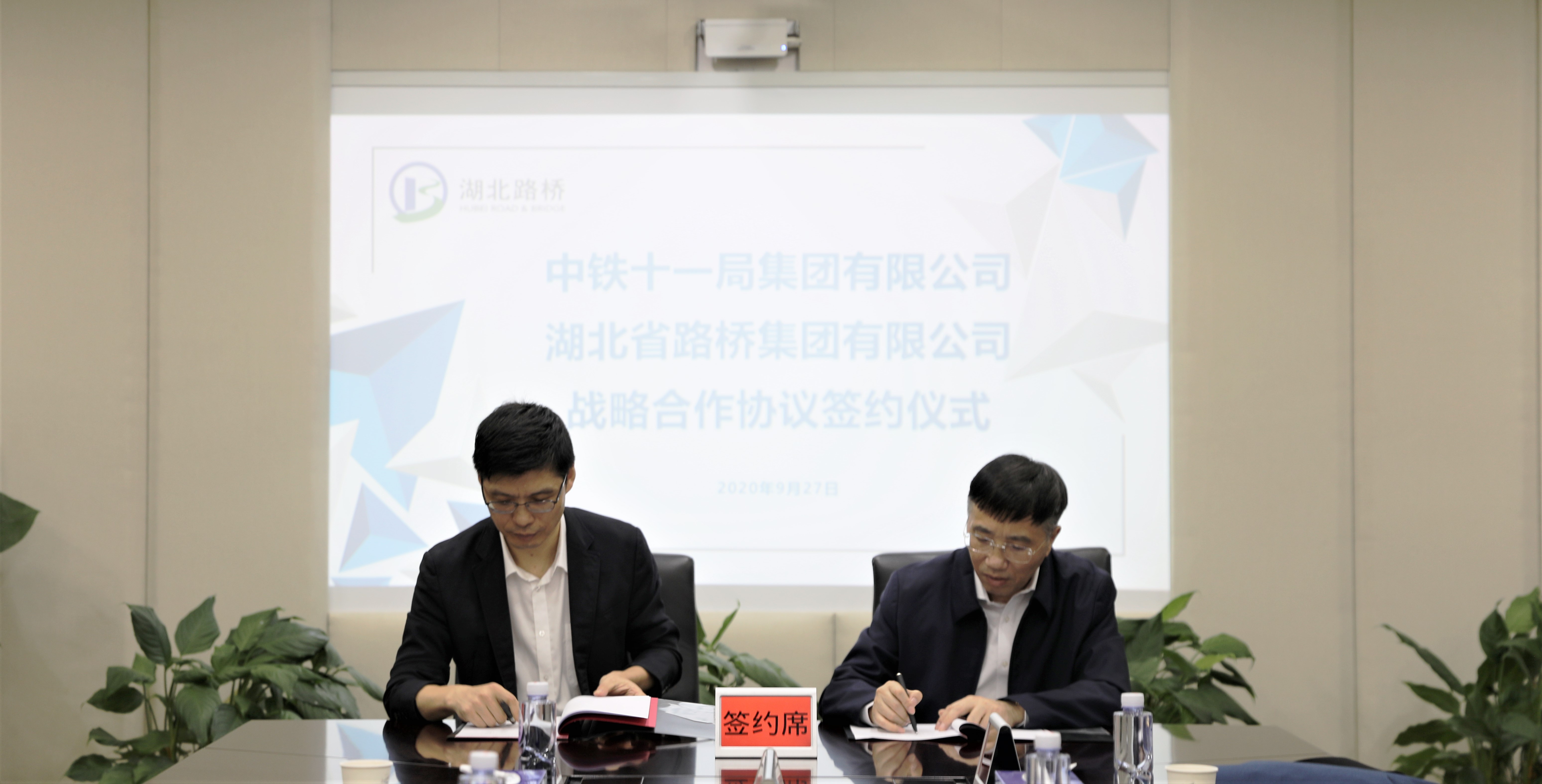 9月27日,湖北路桥与中铁十一局签署战略合作协议,双方将本着优势互补、互利共赢、公平合理的原则在项目投资与建设等方面进行长期稳定合作。中铁十一局党委书记、董事长何义斌,湖北路桥党委书记、执行董事周俊代表双方签署协议,湖北路桥党委委员、副总经理潘新平主持会议。
