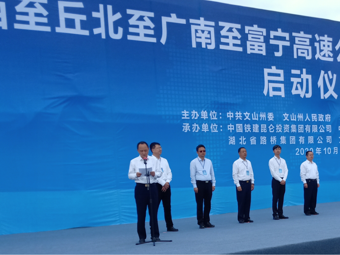 10月12日,由湖北路桥作为联合体成员投资建设的云南泸西至丘北至广南至富宁高速公路(文山段)项目启动仪式在文山州丘北县举行,文山州委副书记、州长张秀兰发表讲话并宣布项目开工。公司党委副书记、总经理刘祖雄出席启动仪式并致辞。