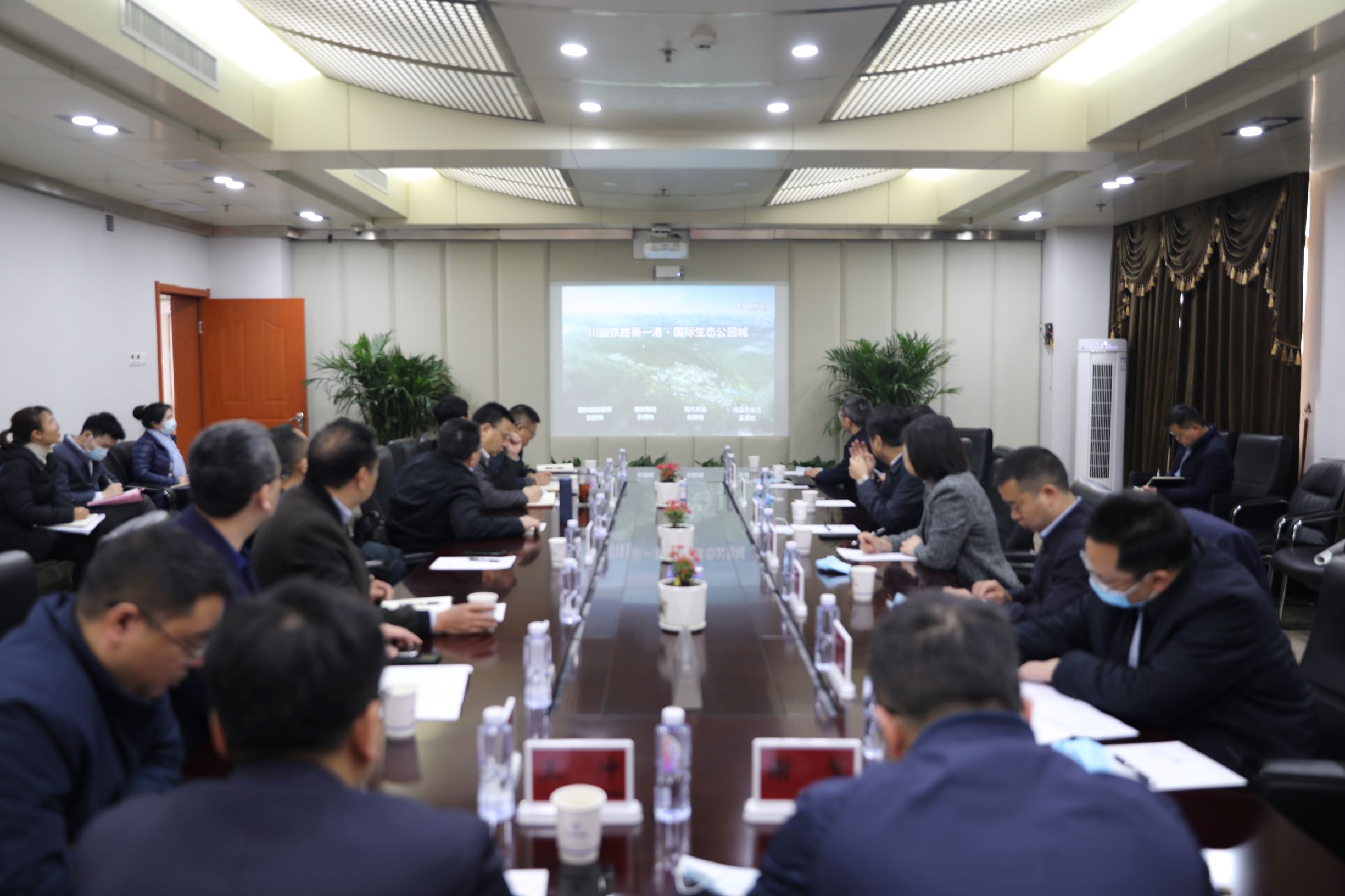 蒲江县考察团详细介绍了打造“蒲江国际新门户、活力森林山水城”的远景规划,并实地考察了联投花山生态新城项目。