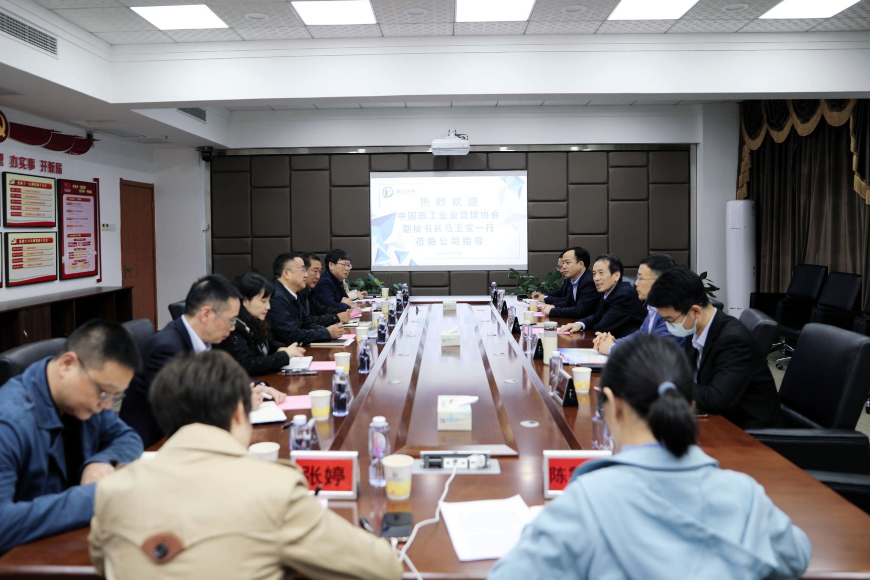 10月18日,中国施工企业管理协会副秘书长马玉宝一行到访湖北路桥,与湖北路桥党委书记、执行董事丁峻就建筑企业财税管理进行探讨和交流。