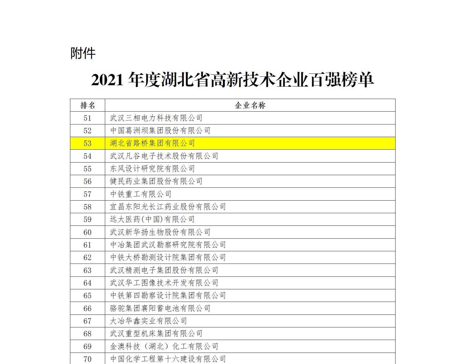 近日,湖北省服务高新技术企业“春晓行动”启动会在武汉召开,湖北省科技厅联合湖北省科技信息研究院发布湖北省高新技术企业百强名单,湖北路桥荣登榜单。