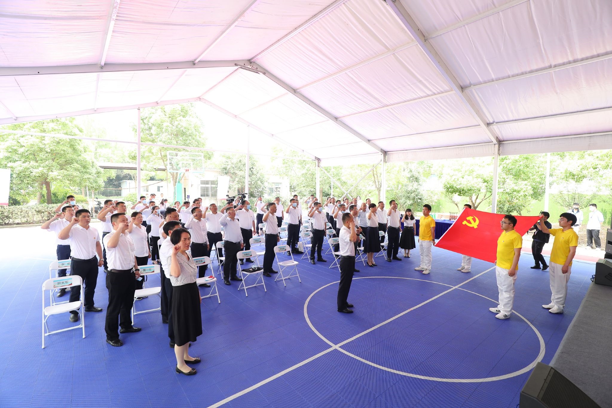 在经验交流会现场,联投建投集团、湖北路桥党委书记、董事长刘祖雄带领全体党员重温入党誓词,激励党员不忘初心、牢记使命、永远奋斗。
