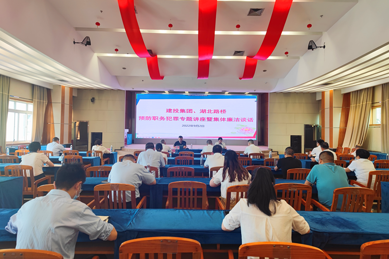 9月2日下午,根据2022年党风廉政建设宣传教育月活动安排,建投集团、湖北路桥组织开展预防职务犯罪专题讲座暨集体廉洁谈话,公司党委委员、纪委书记王运红出席会议,纪委副书记兼纪检工作部部长孙慧君主持会议。