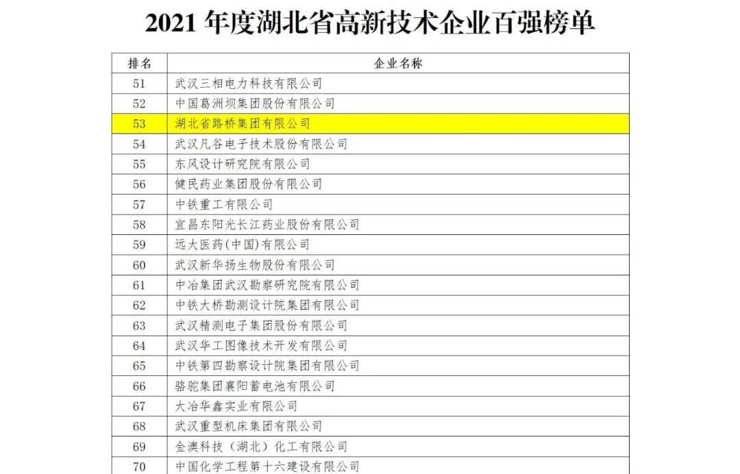 自获批“湖北省企业技术中心”以来,湖北路桥持续推进科研平台建设,先后建立了“旷新辉创新工作室”“公路桥梁建造与维护技术协同创新中心”等多个科研创新平台。2020年至今,湖北路桥立足项目建设,先后与湖南大学、武汉理工大学、武汉工程大学等多所国内知名高校深化产学研合作,通过具体科研项目解决现场施工难题、培养相关技术人才、产出系列科研成果,累计7个项目获省交通厅科研立项,获批立项地方标准和团体标准10项,入选2021年度湖北省高新技术企业百强榜单。2022年,湖北路桥专家科创站揭牌成立,全国工程勘察设计大师徐恭义入驻科创站,进一步提升了工程设计、施工整体水平。